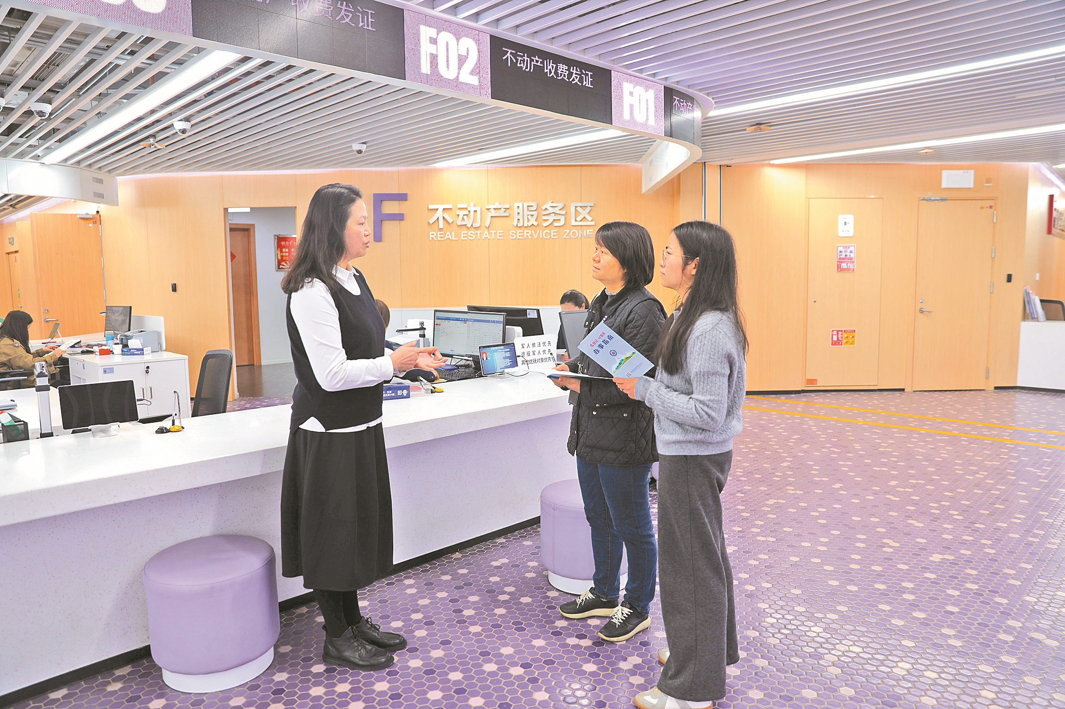 在2号窗口,监督人员递上材料后,工作人员迅速核验:“您的资料齐全,现在为您办理。” 伴随着键盘敲击声,不到1分钟,房产证原件已递到手中。转到6号楼土地登记窗口时,工作人员主动提醒:“您只需要补充填写这张申请表。”5分钟后,土地证顺利到手。