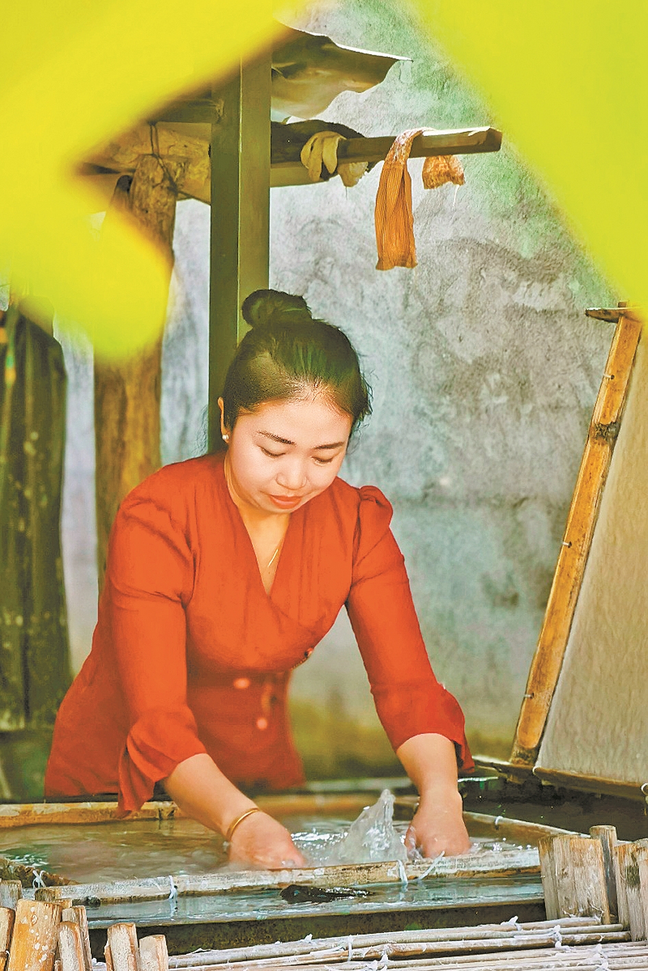 耿马傣族佤族自治县孟定镇的芒团村,素有“中华傣家造纸第一村”的美誉。在这里,国家级非物质文化遗产——傣族手工造纸技艺,仍在傣家儿女的指尖代代相传,历经600余年时光沉淀,愈发鲜活灵动。而这份技艺的延续与焕新,离不开一位守护者与创新者的默默耕耘,她便是耿马县政协委员、傣家手工造纸技艺第九代传承人艾叶。