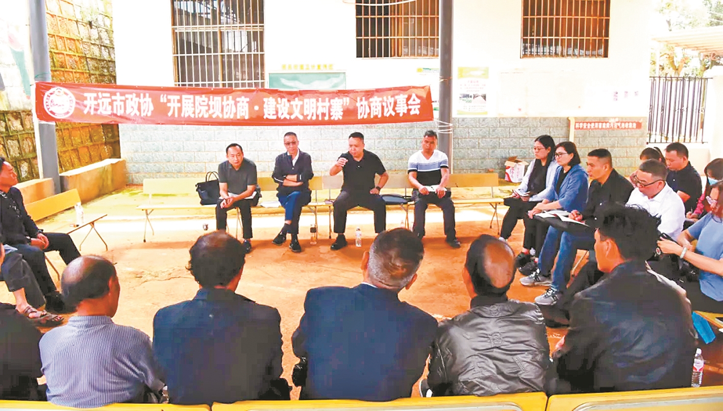 今年6月,开远市政协在该市灵泉街道三台铺村洒红口村民小组召开以“苗族儿女心相依 同心共筑中国梦”为议题的院坝协商议事会议。