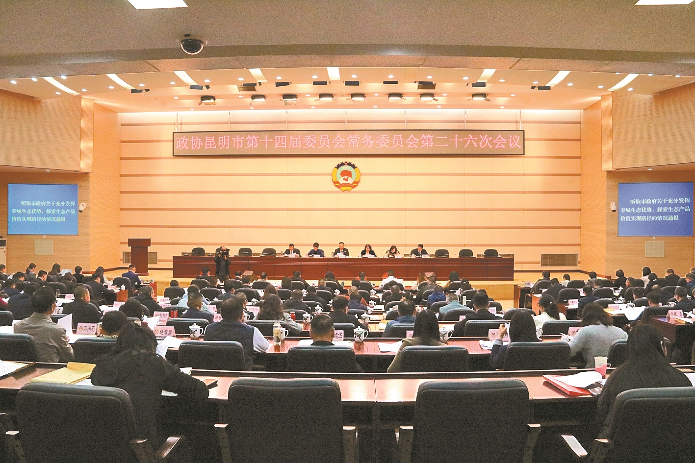 10月22日,政协昆明市第十四届委员会常务委员会第二十六次会议召开。会议围绕“充分发挥春城生态优势,探索生态产品价值实现路径”开展协商议政。为开好本次专题议政性常委会会议,会前,昆明市政协组织部分委员,各县(市、区)政协、市级各民主党派、市工商联和有关人民团体,并邀请有关专家围绕会议主题,认真开展调查研究,撰写提交建言材料。会议共收到建言材料68篇,会上选取10篇进行大会发言,市政府有关领导及3个市级职能部门负责人到会作现场回应。会议期间,还分3个组开展了协商讨论。