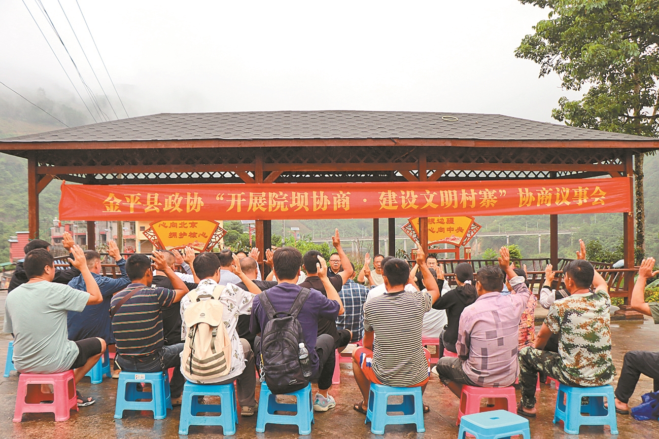 近日,金平苗族瑶族傣族自治县政协在该县沙依坡乡浪板村召开以“共议理顺交通秩序,给出行系上‘隐形安全带’”为议题的院坝协商议事会议。