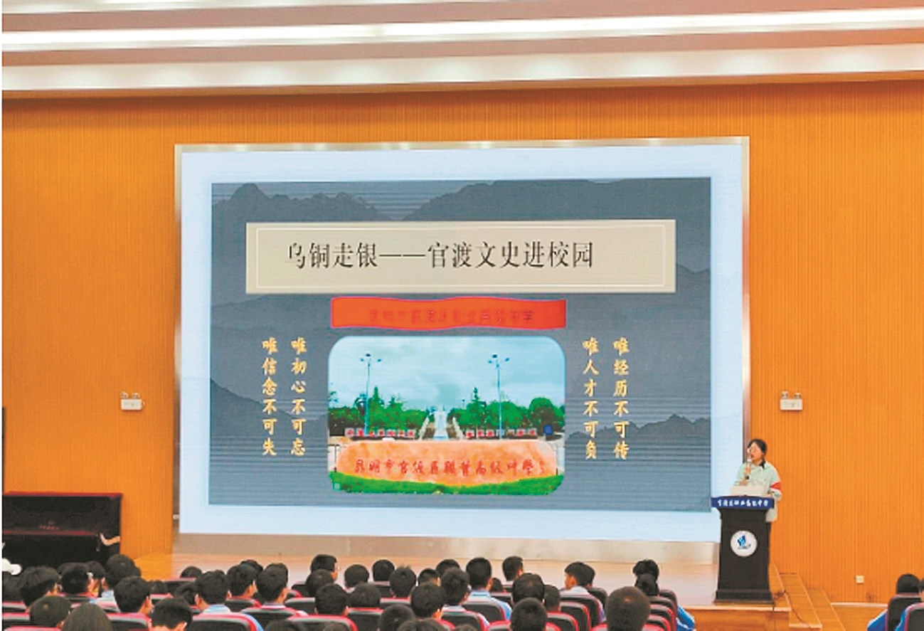 昆明市第十二中学把校办工厂“云南围棋厂”的档案“搬进”课堂;金马中学老师带领学生走访金江中学旧址,录制“红色地图”;曙光小学把“看图猜地名”做成盲盒,答对即可领取“乌铜走银”书签云南大学附属会展学校设计的“官渡文化导览图”,引导学生利用周末开启文化探寻之旅,让青少年从文化学习者变身传播者。西南大学官渡实验学校鼓励学生制作官渡本土历史讲解视频,撰写“官渡故事我来讲”主题作文。官渡区第二中学组织学生到云南天文台开展“研云南天文,学官渡文史”主题研学活动,活动结束后,同学们将所学、所思、所想制作成精美的手抄报。