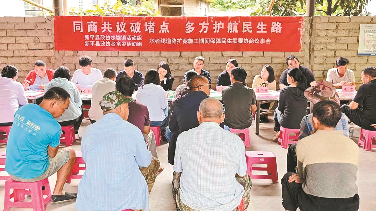 近日,新平彝族傣族自治县政协在该县水塘镇现刀村丙坡村民小组召开以“同商共议破堵点 多方护航民生路”为议题的院坝协商议事会议。